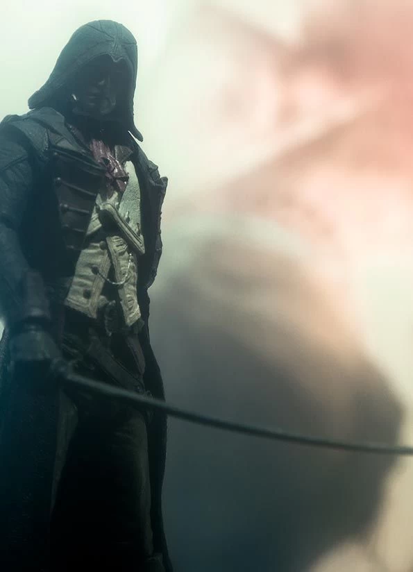 Hoch detaillierte McFarlane Actionfigur von Arno Dorian aus dem Videospiel Assassin’s Creed: Unity.