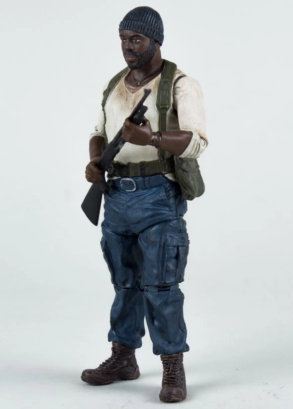 Die bewegliche Figur von Tyreese kommt mit Shotgun, Pistole (schallgedämpft) und Hammer.